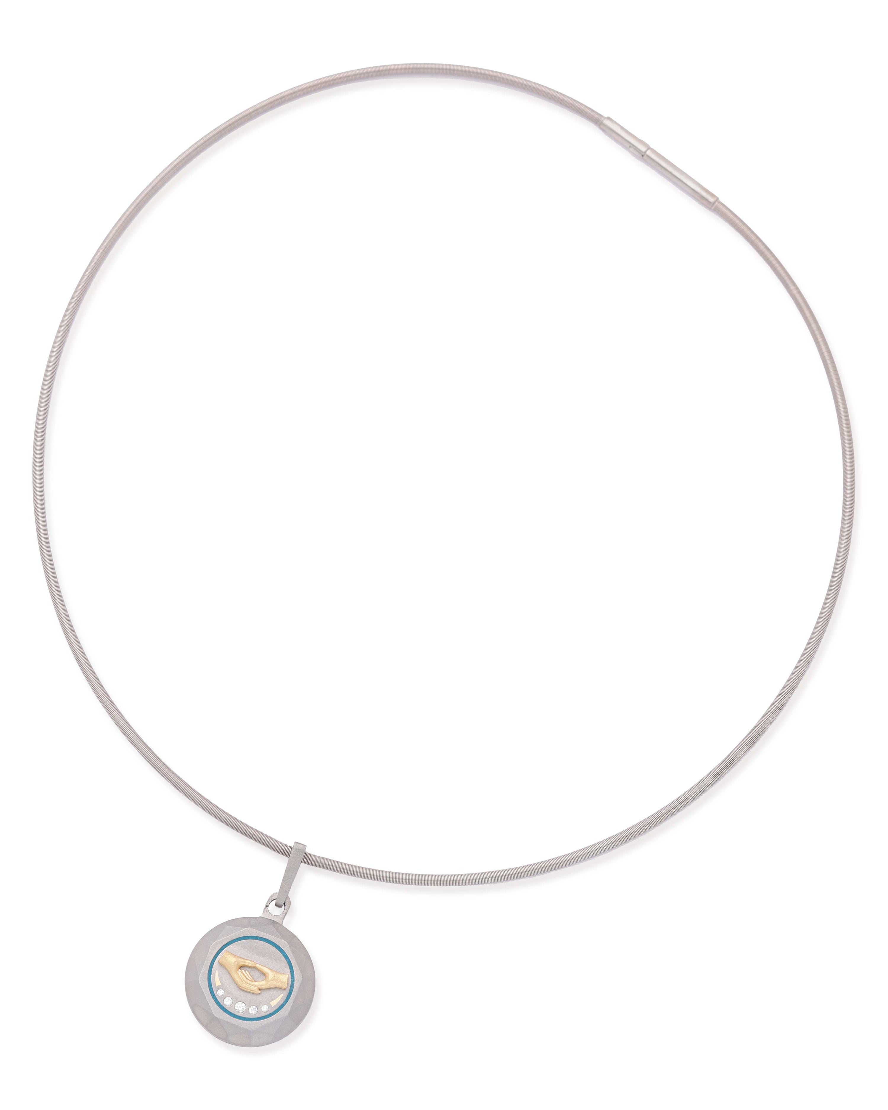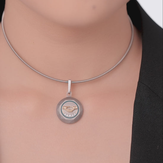 The Dhyana Pendant channels the energy of stillness and elevated consciousness. Crafted in aerospace-grade titanium and accented with ReBorn Gold and ReBorn Natural Diamonds, it reflects the meditative power of the crown chakra, bringing clarity, calm, and deep spiritual connection.