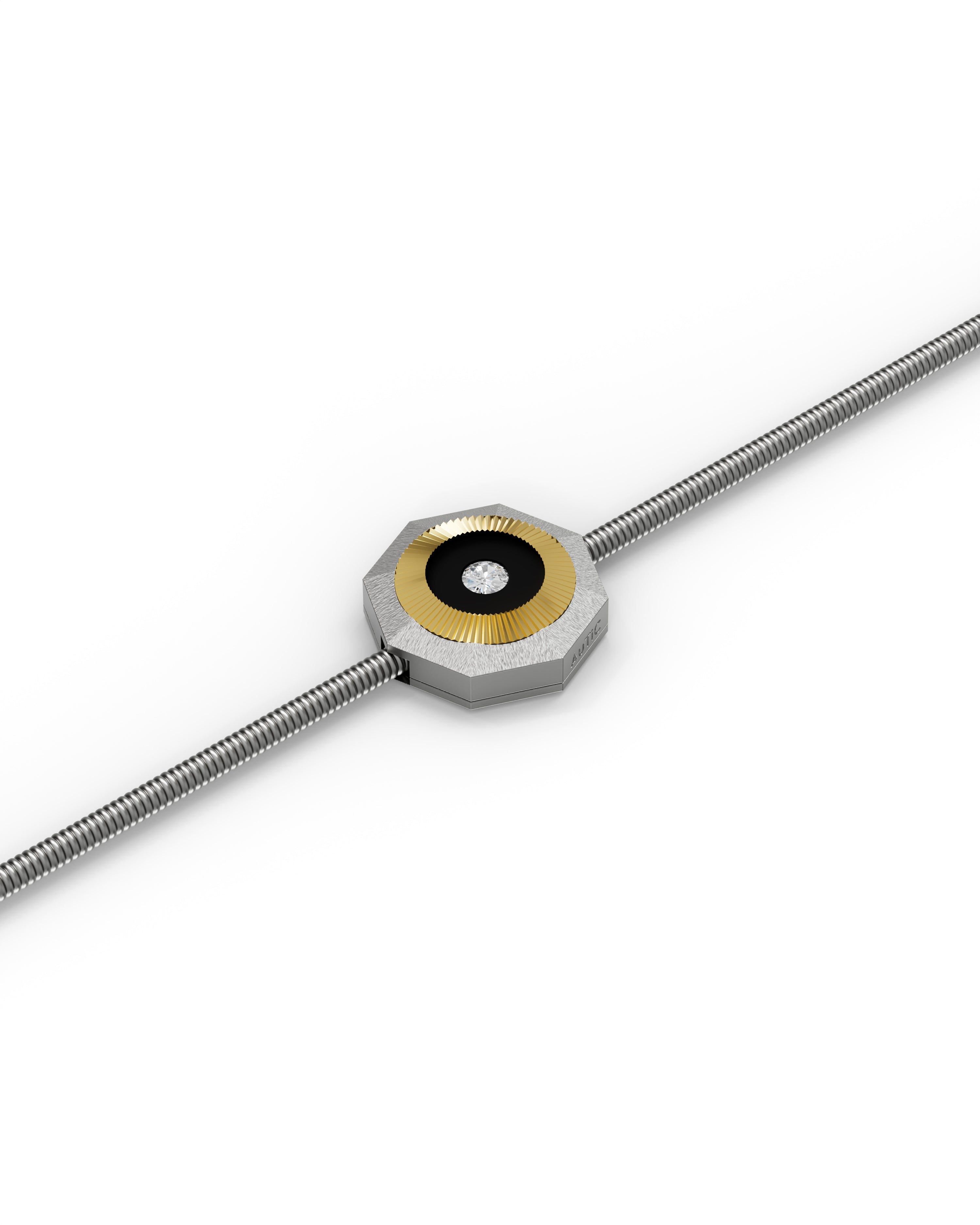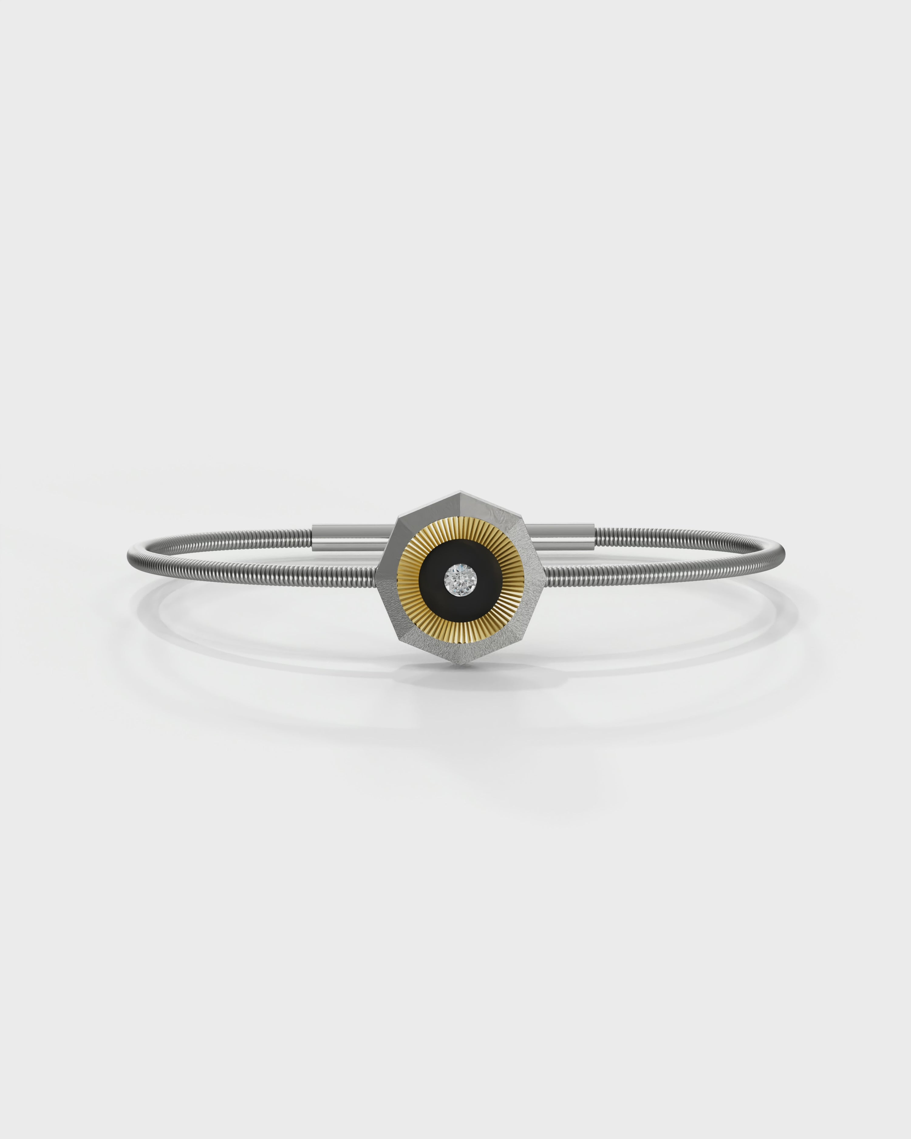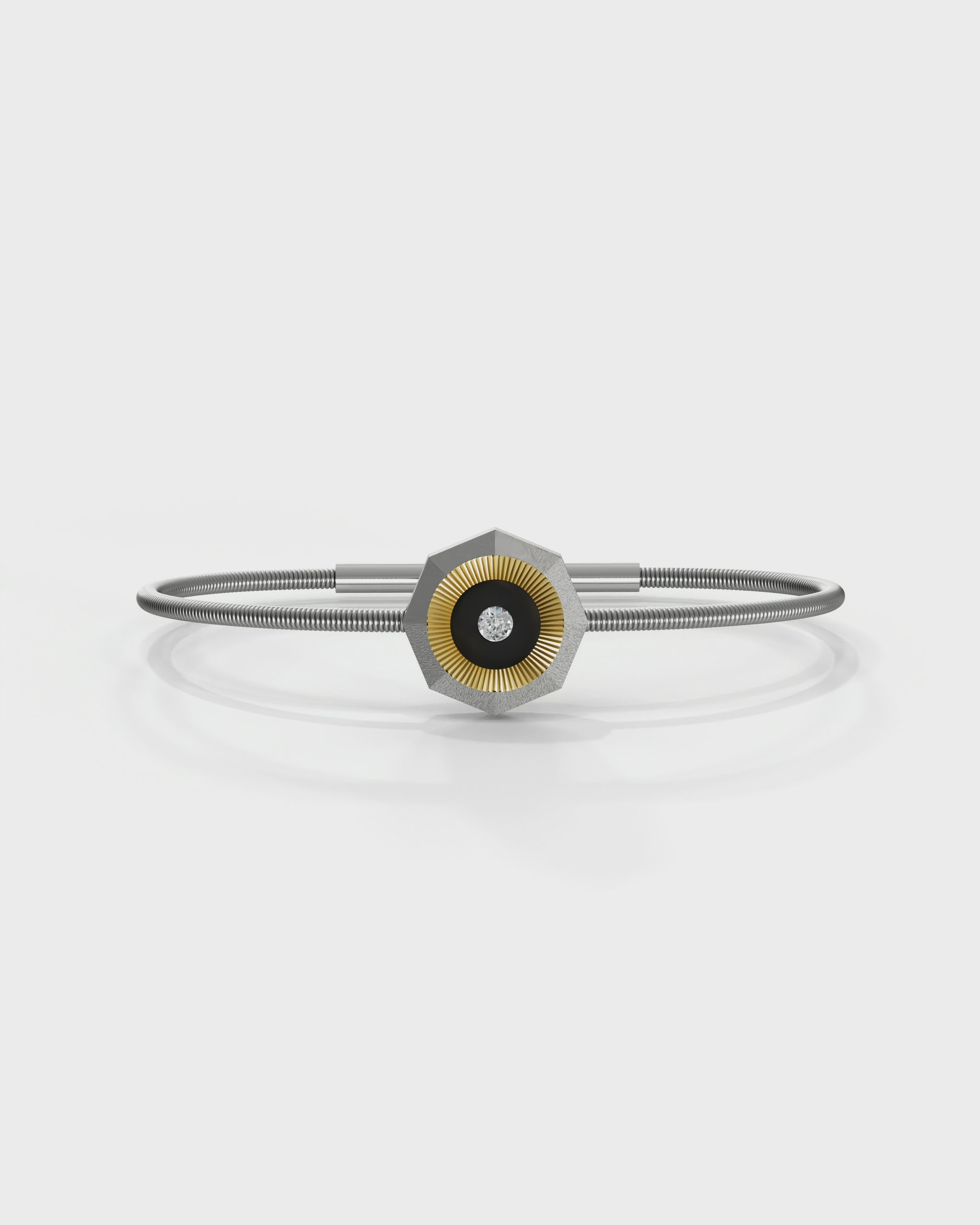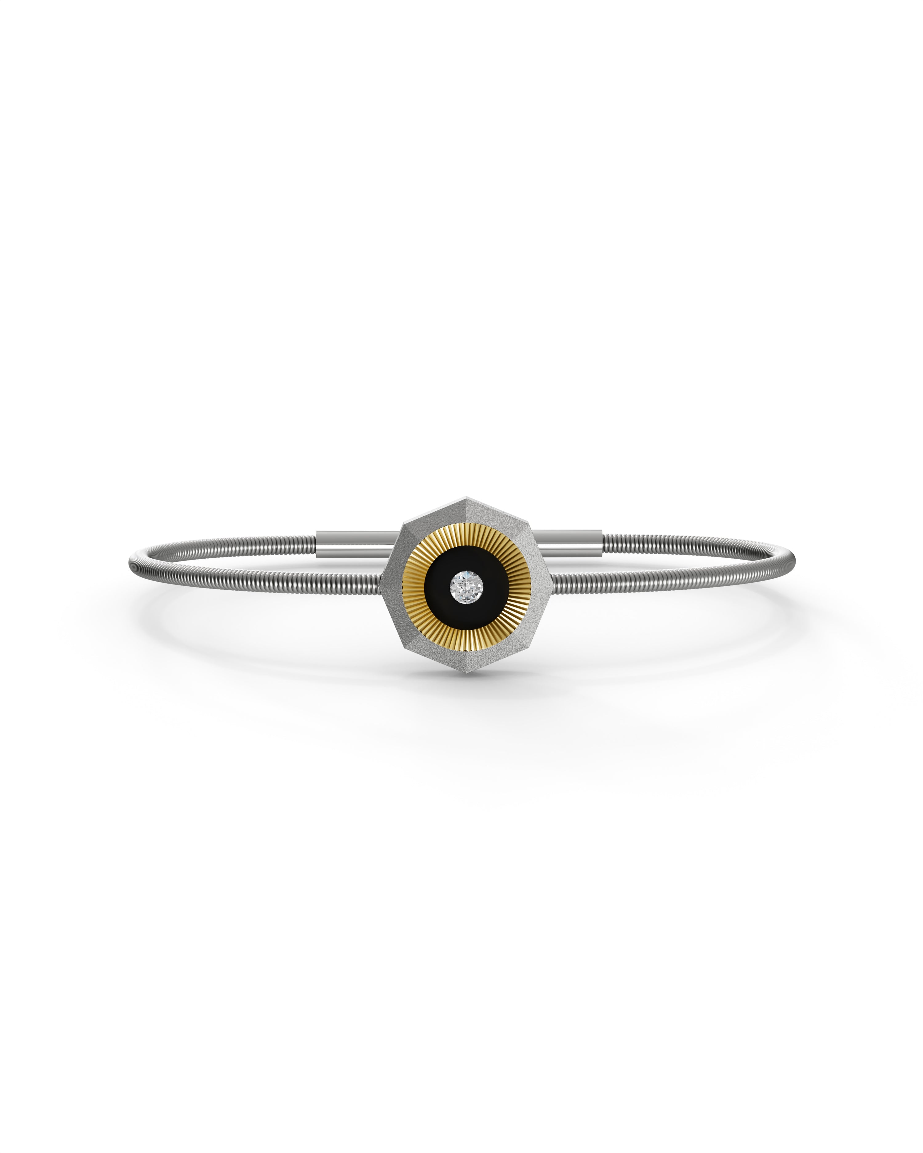 Aura Titanium Cord Bracelet is lightweight yet resilient. This everyday bracelet features Aerospace-grade titanium paired with a durable titanium cord and finished with faceted 18K ReBorn Gold and natural diamond with ceramic enamel. It is designed for effortless, all-day style which is refined, minimal, and made to last.