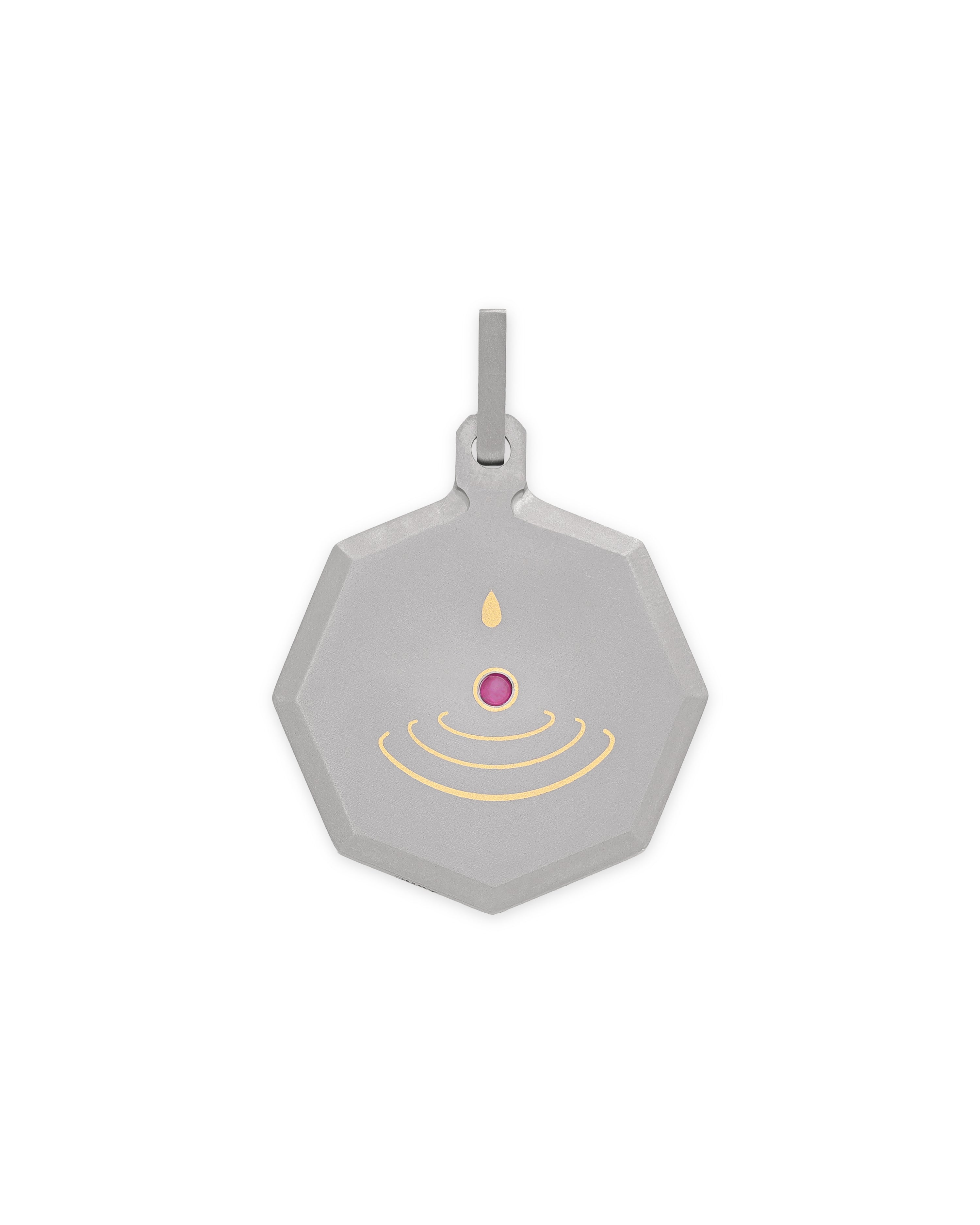 The Cancer zodiac sign aerospace grade titanium pendant is designed for those who love life's simple pleasures but also enjoy being the center of attention. Ruled by the moon and known for their creativity, this aerospace-grade titanium, recycled gold, and lab-grown diamond pendant celebrates their dramatic side in a bold way.