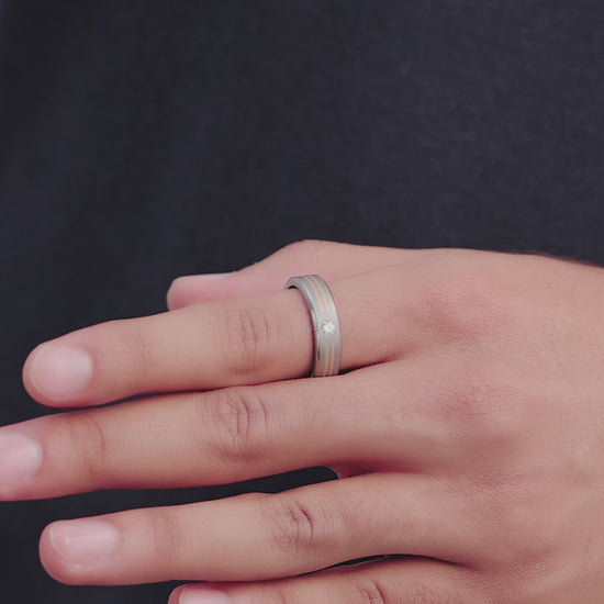 Aerospace Grade Titanium Hand Inlaid with 22K ReBorn Gold Studded with 1 brilliant-cut White ReBorn Natural Diamonds totaling up to 0.10 CT.