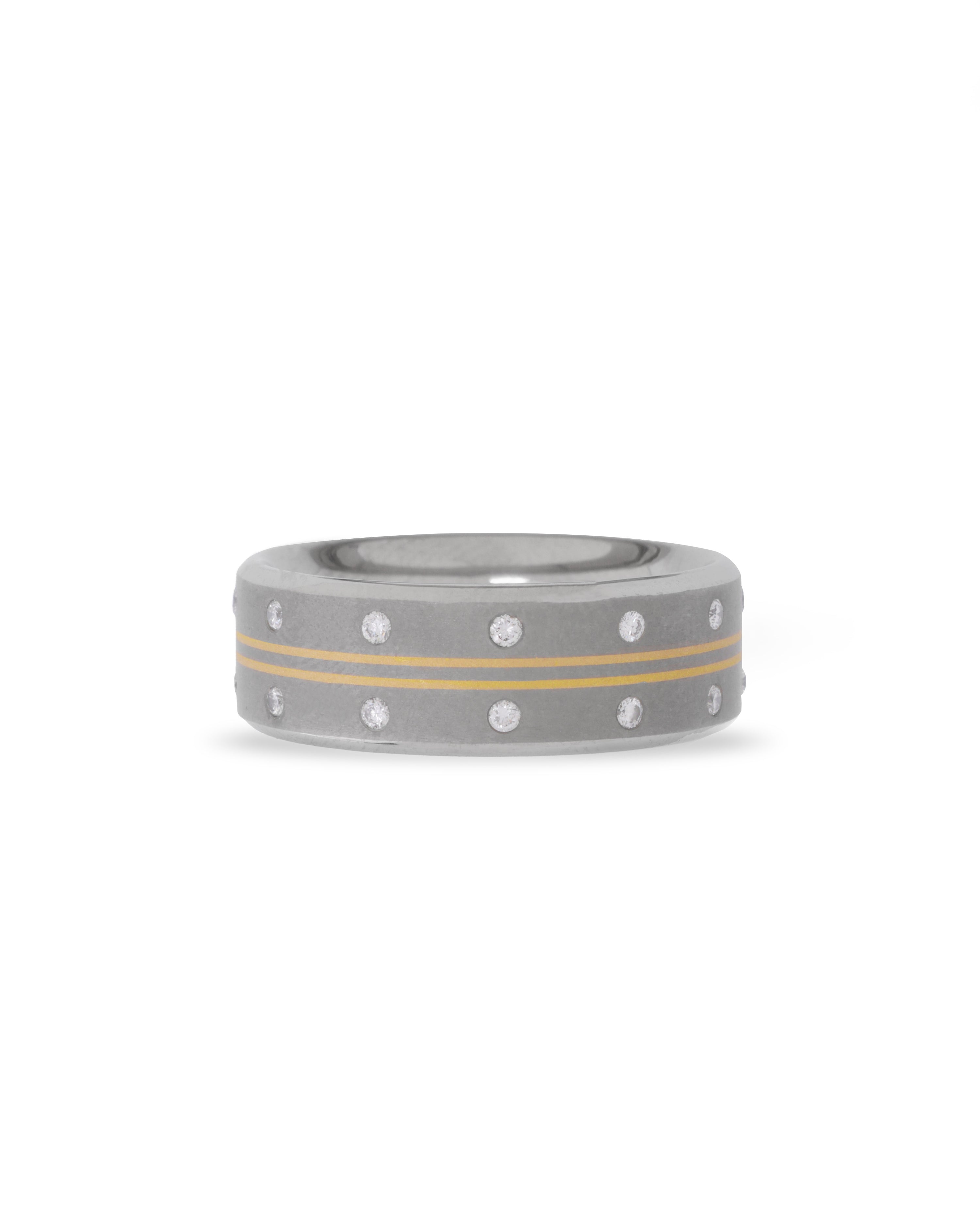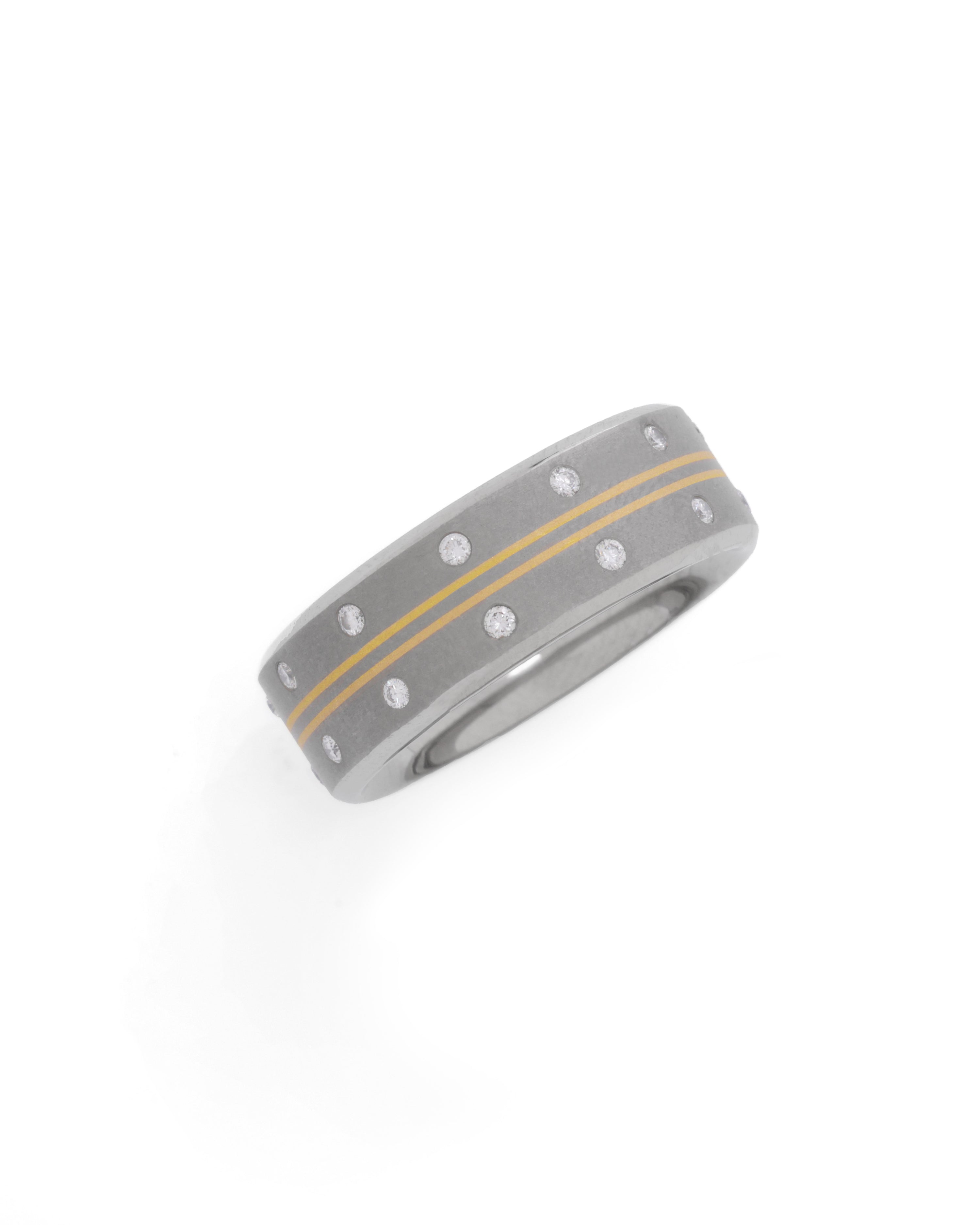 Aerospace Grade Titanium Hand Inlaid with 22K ReBorn Gold Studded with 22 brilliant-cut White ReBorn Natural Diamonds totaling up to 0.30 CT.