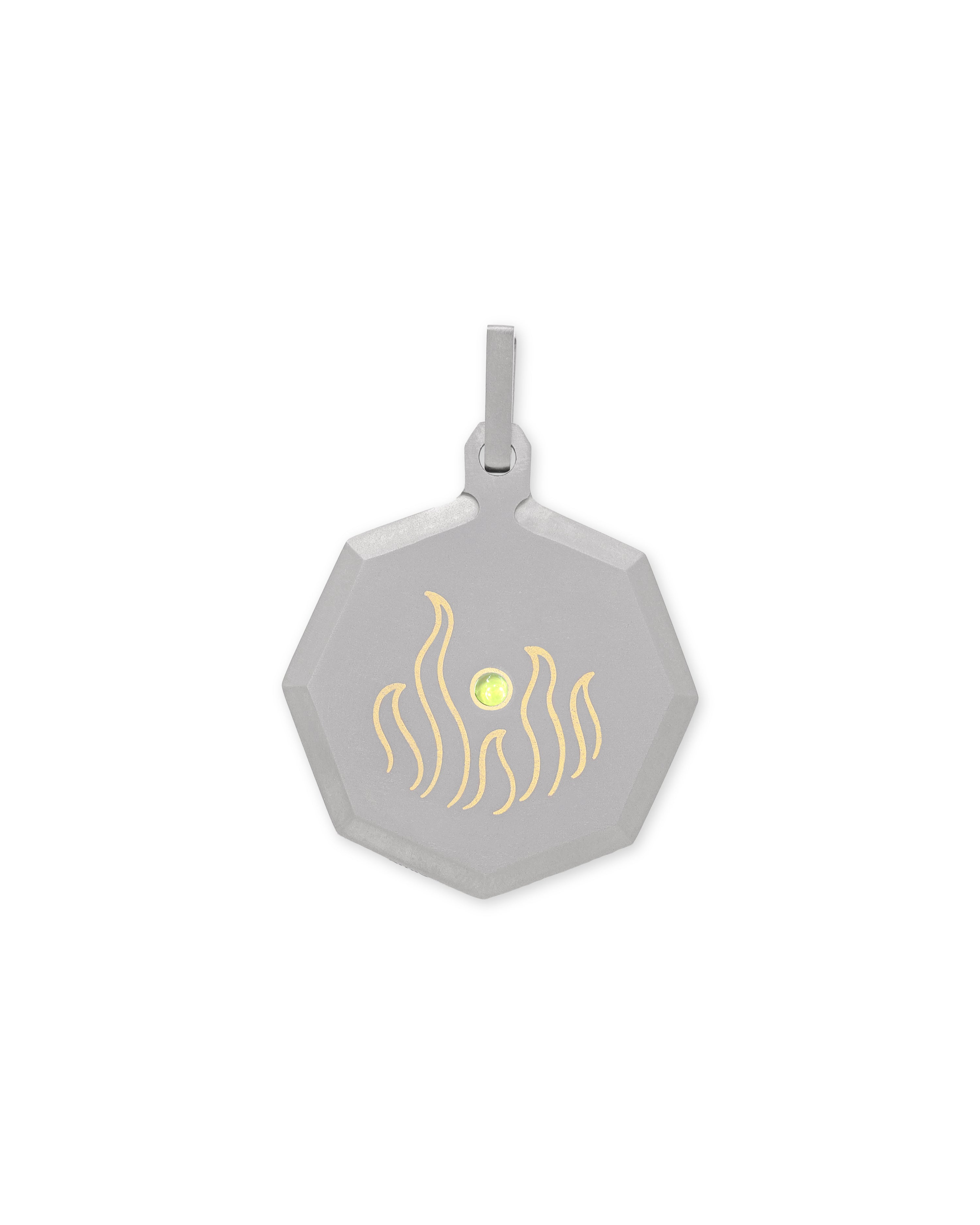 Lion (Leo) Zodiac Pendant designed for the passionate and fun-loving Leo, this titanium pendant is all about positive vibes. Made from aerospace-grade titanium, 22k recycled gold, lab grown diamonds and detailed with Mother of Pearl, this pendant is made to boost the confident, creative Leo's personality.