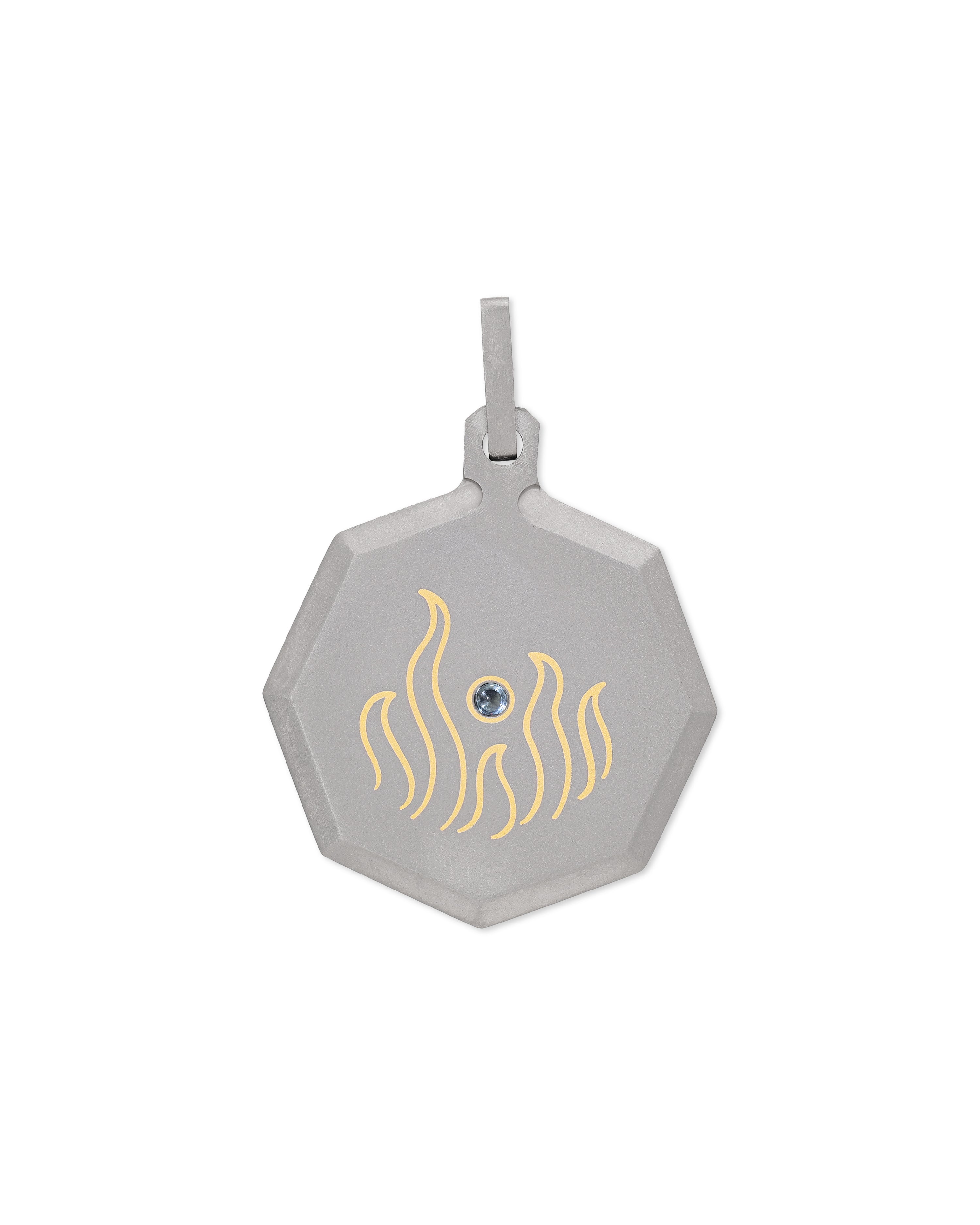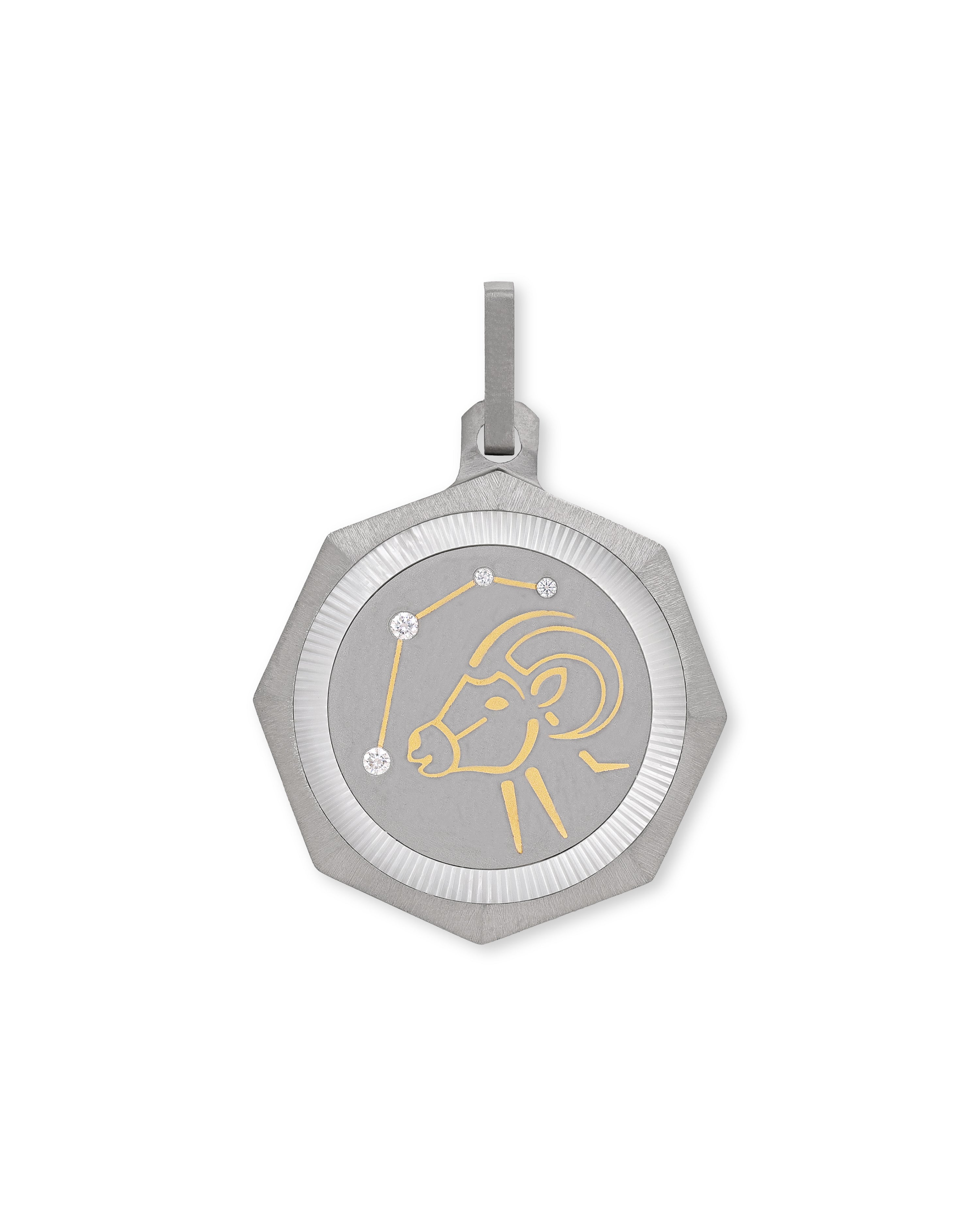 This Titanium Aries Zodiac Pendant is designed for the bold and energetic Aries and is all about heart and desire. Made from aerospace-grade titanium, this luxurious piece, complete with Aries sign birthstone at the back is an absolutely luxurious piece. For those ruled by planet Mars, this pendant made with aerospace-grade titanium, recycled gold, and lab grown diamonds is meant to bring out your imaginative and creative side.
