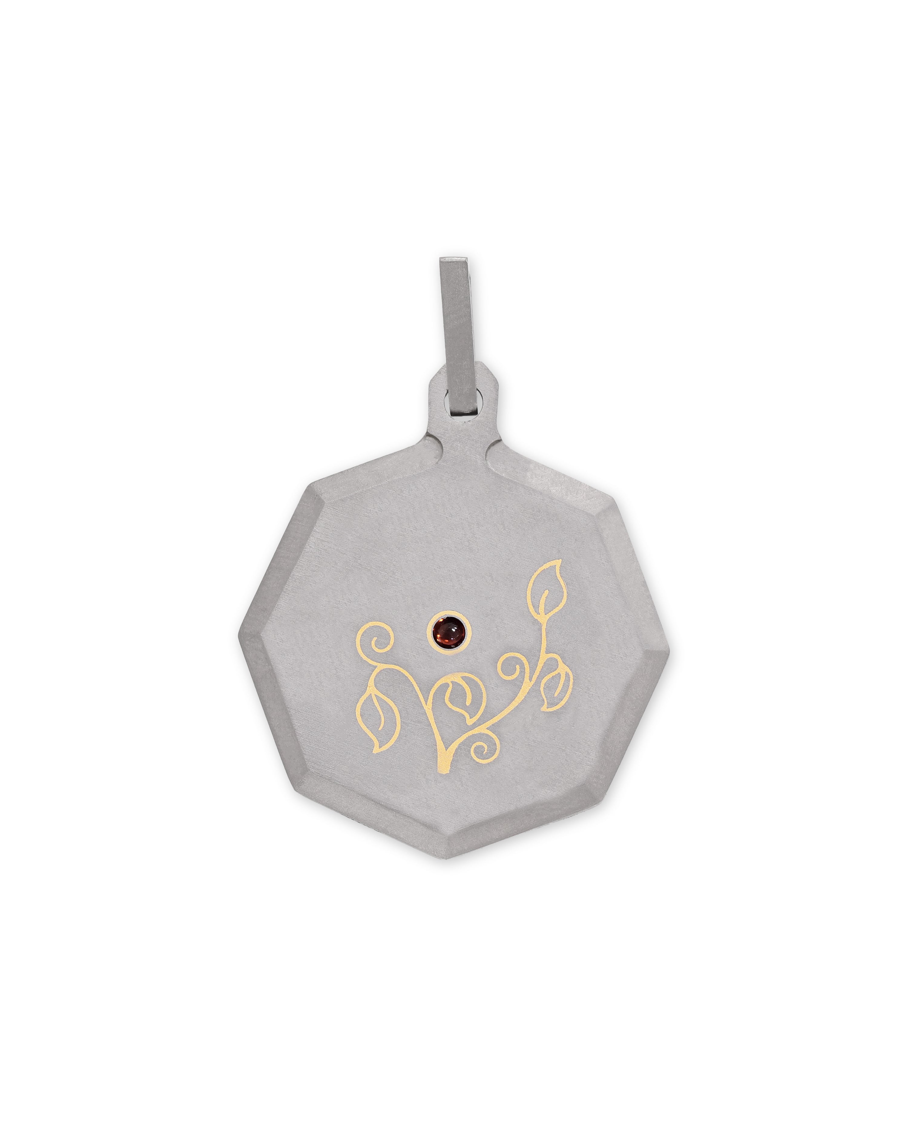 Studded with VS+, G+ Color, 9 Round Lab Grown Diamonds of 0.15 CT weight, and a Garnet Birthstone.