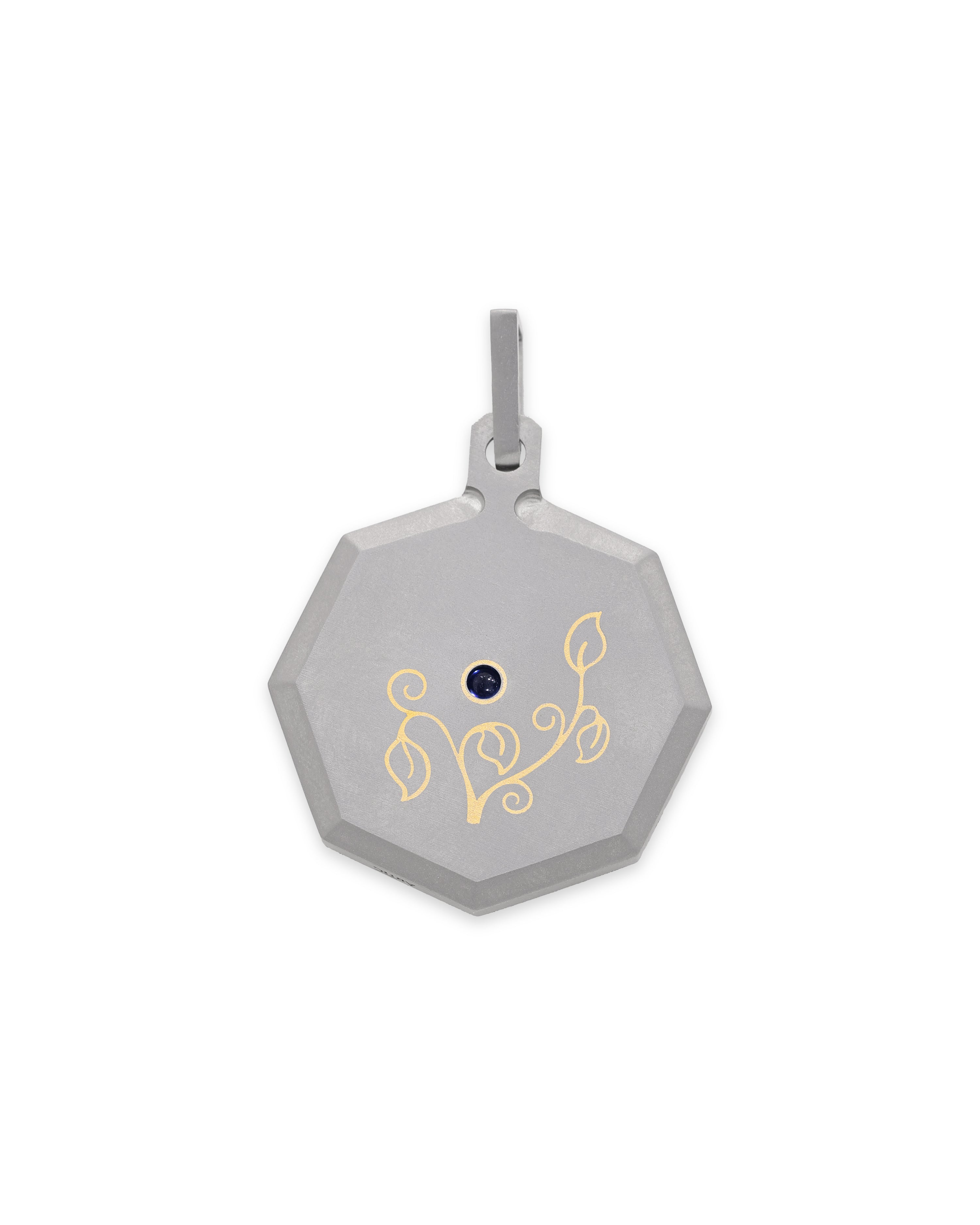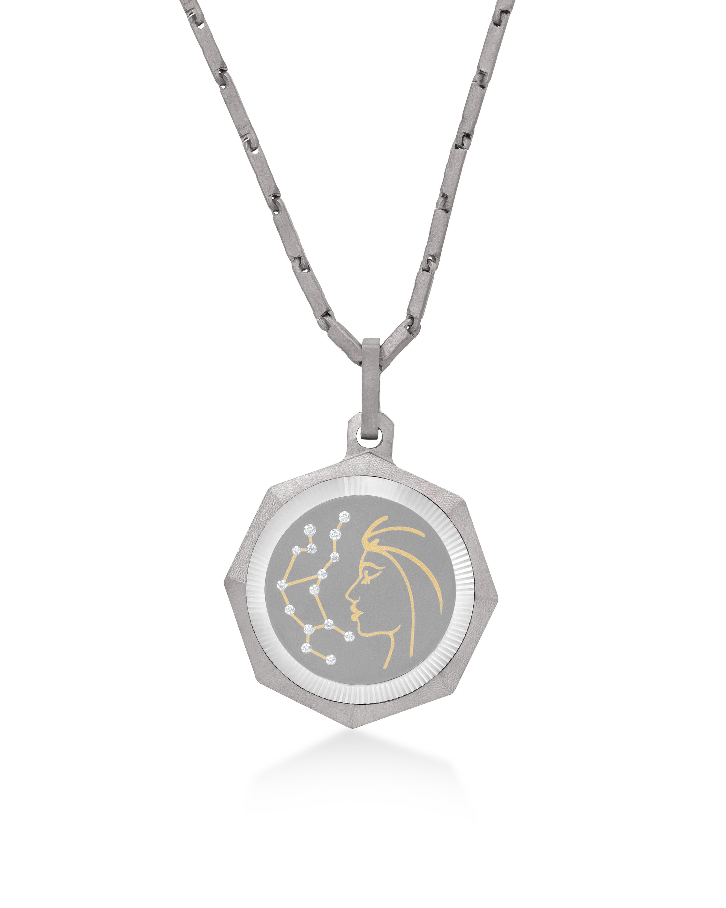 Titanium Virgo Zodiac Pendant showcases intricate attention to detail just like the detail-oriented Virgo. Made with aerospace-grade titanium, 22k recycled gold Virgo constellation, lab-grown diamonds, faceted Mother Of Pearl, and Virgo birthstone at the back, this industry-first titanium pendant is a tribute to the sharp and reliable Virgo.